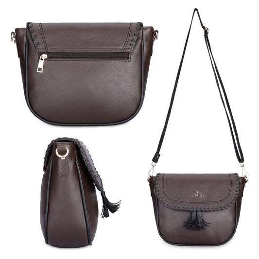 Faux Leather Sling Bag - Durable Snap Flap Closure | Adjustable Strap | Dark Brown