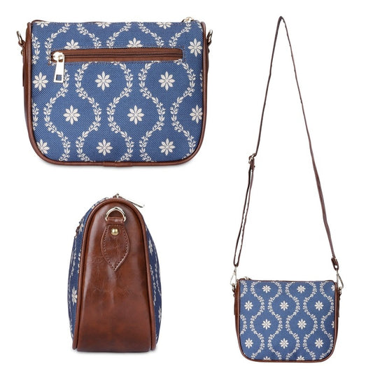Garnet Series Printed Handicraft Fabric & Tapestry Crossbody Sling Bag for Women Ladies Single Shoulder Bag Shoulder Belt (Royal Blue)