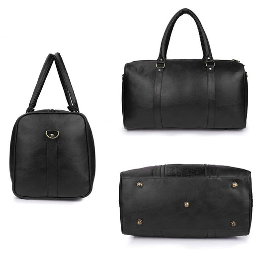 29L Travel Duffle Bag - Faux Leather, Spacious Organizer | Unisex | Black
