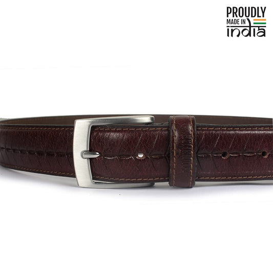 Men's Genuine Leather Belt with Textured/Embossed Design- Umber Brown (Size-36 inches)