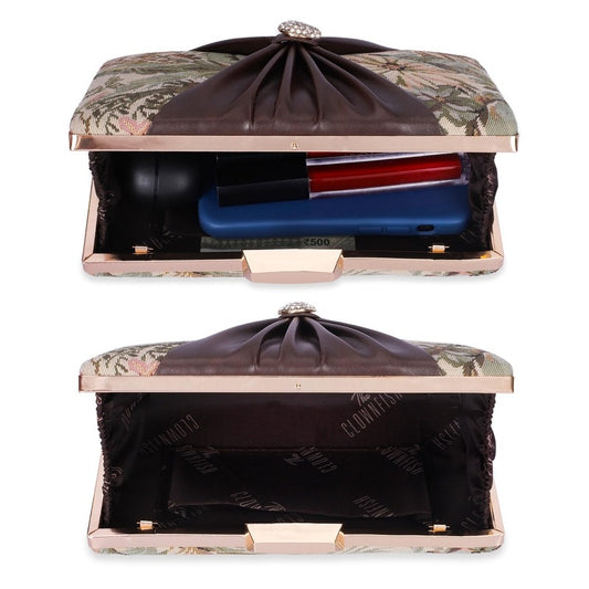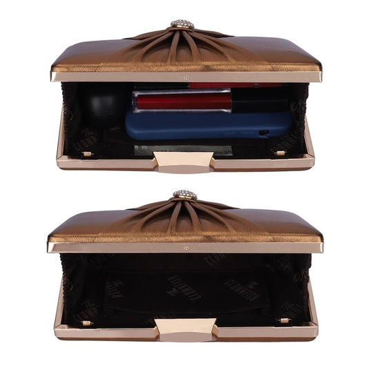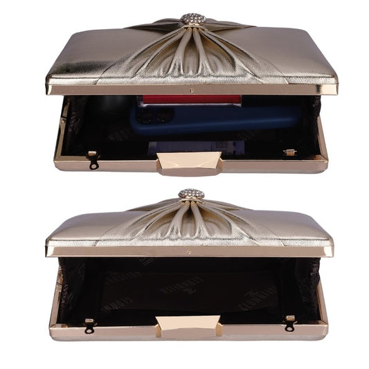 Womens Party Clutch - Exquisite Design & Chain Strap | Stylish Evening Bag | Light Golden