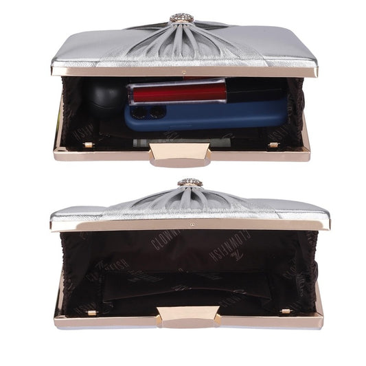 Faux Leather Womens Party Clutch with Chain Strap | 21x3x13 cm | Silver