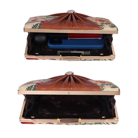 Emerald Collection Womens Party Clutch Ladies Wallet Evening Bag with Fashionable Round Corners Beads Work Floral Design (Red)