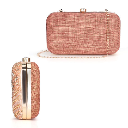 Womens Party Clutch - Exquisite Design & Chain Strap | Stylish Evening Bag | Light Golden