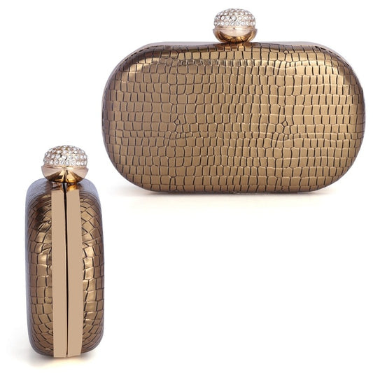 Faux Leather Womens Party Clutch - Elegant Design | Detachable Shoulder Chain | 1.14L | Golden