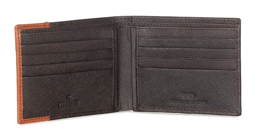 RFID Protected Genuine Leather Bi-Fold Wallet for Men with Multiple Card Slots (Dark Brown)