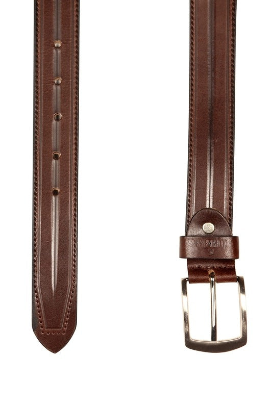 Men's Genuine Leather Belt with Textured/Embossed Design-Coffee Brown-1 (Size-36 inches)
