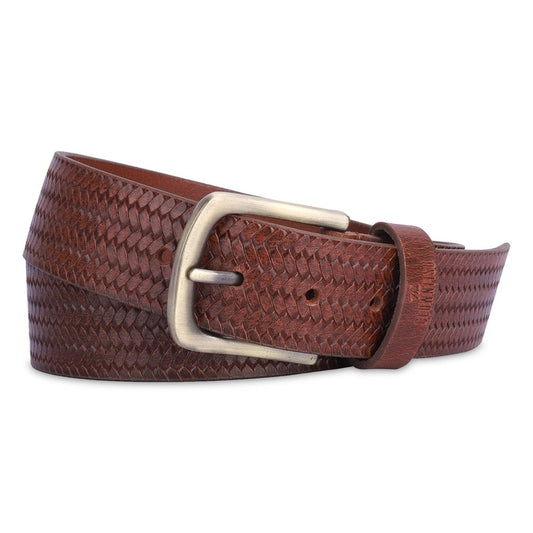 Men's Genuine Leather Belt with Embossed Design - Cinnamon Brown (Size - 40 inches)