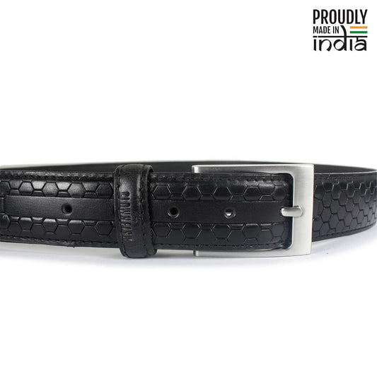 Mens Genuine Leather Belt with Embossed Design - Jet Black (Size - 32 inches)