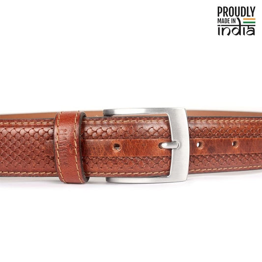 Mens Genuine Leather Belt with Textured/Embossed Design-Ginger Bread (Size-40 inches)
