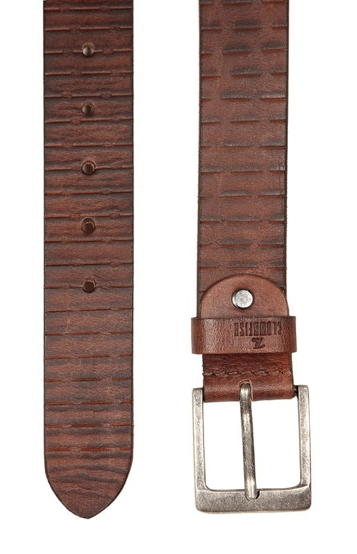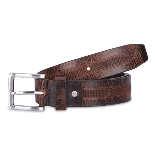 Mens Genuine Leather Belt with Textured/Embossed Design-Umber Brown (Size-32 inches)