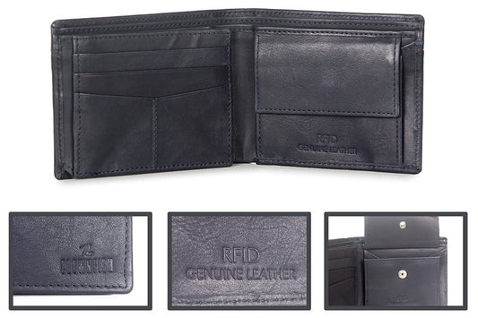 RFID Protected Genuine Leather Bi-Fold Wallet for Men with Multiple Card Slots, Coin Pocket & ID Window (Navy Blue)