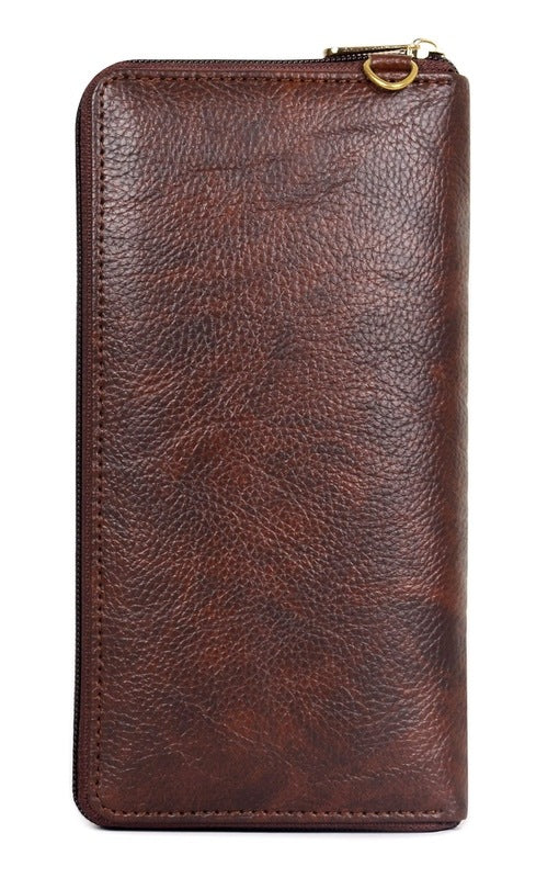 Monalisa Collection Genuine Leather Womens Wallet Clutch Ladies Purse with Multiple Card Slots & Metal Zip Around Closure (Tan)