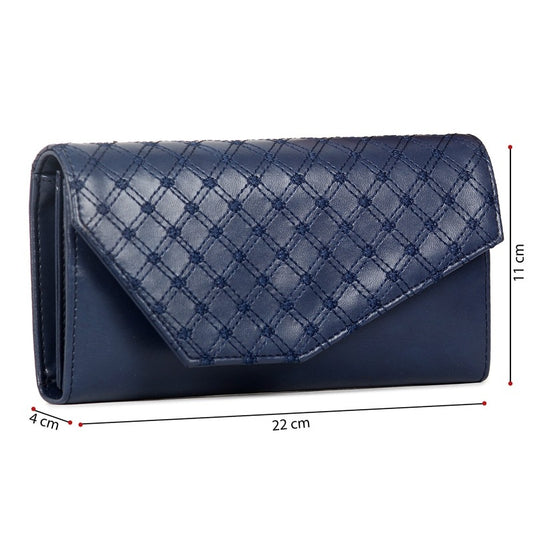 Fab Series Printed Handicraft Fabric & Vegan Leather Ladies Wallet Clutch Purse for Women Girls with Multiple Compartments (Royal Blue)